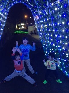 点灯式には行けませんでしたが、きれいなイルミネーションに子供たちもはしゃいでいました。